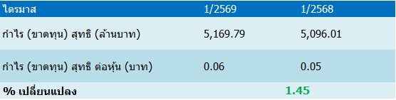 สำหรับ TTB รายงานผลประกอบการไตรมาส 1/69 มีกำไรสุทธิอยู่ที่ 5,169.79 ล้านบาท เพิ่มขึ้น 1.45% เมื่อเทียบกับงวดเดียวกันของปีก่อนมีกำไรสุทธิ 5,096.01 ล้านบาท เป็นผลมาจาก แม้รายได้หลักยังเผชิญแรงกดดันจากการปรับลดอัตราดอกเบี้ยนโยบายเร็วกว่าคาดในเดือนกุมภาพันธ์ 2569 และการชะลอตัวของสินเชื่อ
