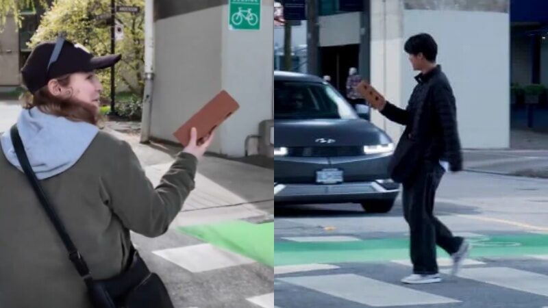 ไวรัล! เปิดไอเดียใหม่ ชาวแคนาดาถืออิฐเดินข้ามถนน โบกเบา ๆ ให้รถจอด