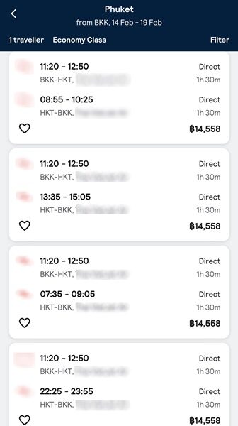 โดยเดินทางไปวันที่ 14 กุมภาพันธ์ 2567 เดินทางกลับวันที่ 19 กุมภาพันธ์ 2567 ผลปรากฏว่า ราคาตั๋วเครื่องบินพุ่งสูงมากถึง 14,558 บาท พร้อมระบุข้อความว่า