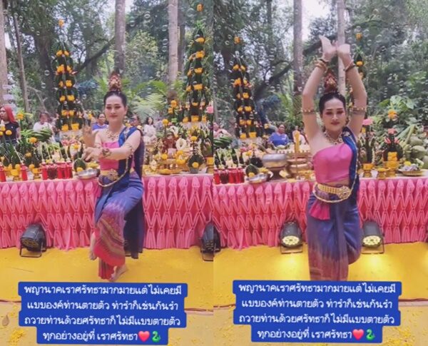 หลังจากที่ตนไปรำบวงสรวงถวายองค์พ่อปู่แม่ย่าในวันนั้น ก็มีกระแสดราม่าเกิดขึ้นถึงท่าทางการร่ายรำของตนนั้น ตนมองว่าคำวิจารณ์ คำติหรือว่าคำชม ที่กำลังเป็นกระแสดราม่าอยู่ตอนนี้ คือตนเป็นคนสาธารณะอยู่แล้ว ก็ยอมรับในคำติชมของทุกคน รับฟังและไม่ได้มีความรู้สึกที่จะต้องโกรธอะไร