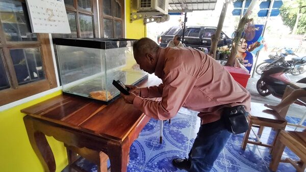 นายธำรงวิทย์ กล่าวต่อว่า ตนจึงนำมาเลี้ยงไว้ในตู้ปลาในบ้าน โดยไม่ได้แจ้งบอกใคร จนกระทั่งวันที่ 9 มี.ค. ตนมาคิดได้ว่า ตะพาบตัวนี้น่าจะมาให้โชคกับผู้คน จึงได้ตัดสินใจนำตะพาบสีทองใส่ตู้โชว์วางไว้นอกบ้าน จนมีผู้คนที่ทราบข่าวเดินทางมาขอดูขอชมตะพาบสีทองกันไม่ขาดสาย