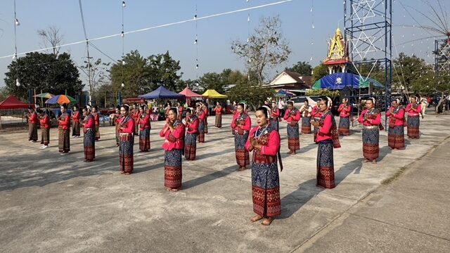 ขณะที่ชาวบ้านกว่า 50 คนได้ร่วมกันตั้งแถวรำถวายบวงสรวง และมีการรำบวงสรวงจากนางรำชุดพิเศษแต่งกายชุดสีทอง และถวายพวงมาลัยสีแดงตามความเชื่อว่า ท้าวเวสสุวรรณโปรดปรานสิ่งของสีแดง โดยชาวบ้านที่มาร่วมพิธีต่างก็เชื่อว่า ต้นปีจะพากันได้รับโชค
