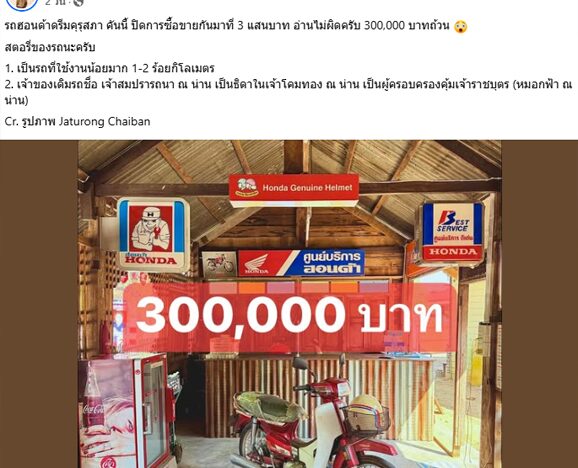 อ่านข่าวต้นฉบับได้ที่ : ฮือฮา ปิดการซื้อขายที่ 3 แสนบาท รถมอเตอร์ไซค์ คันนี้ เจ้าของเดิมไม่ธรรมดา