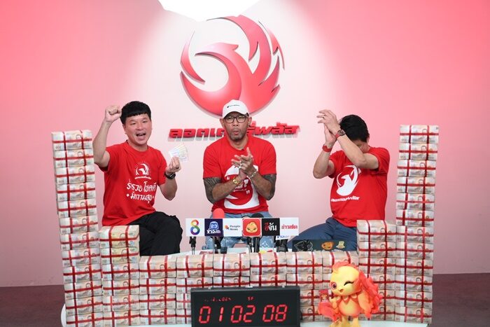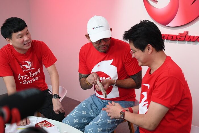 ด้าน คุณนอท พันธ์ธวัช นาควิสุทธิ์ โทรไปแสดงความยินดีกับเศรษฐีใหม่ คนแรก เป็นชาว จ.นครปฐม ถูกลอตเตอรี่พลัส ทั้งหมด 2 ใบ จำนวน 12 ล้านบาท ซึ่งเจ้าตัว งงและตกใจมากกับข่าวดี เพราะกำลังไปที่กำลังทำบุญอยู่