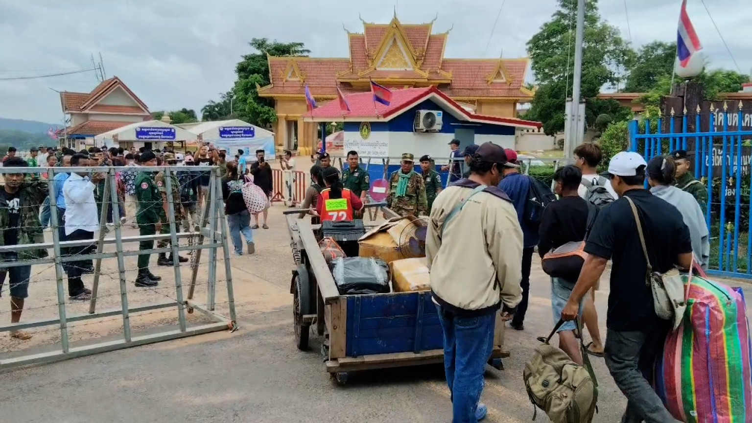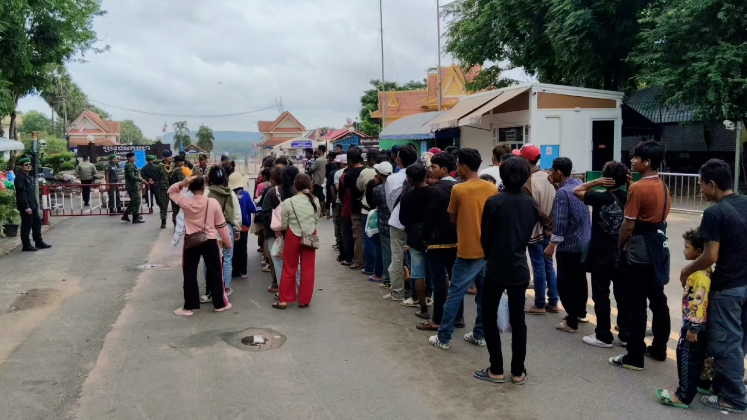 วันนี้ 6 ก.ค.68 เวลา 10.00 น.จนท.กัมพูชา ได้เปิดประตูด่านโอรเสม็ด ฝั่งกัมพูชา บริเวณจุดผ่านแดนถาวรช่องจอม ต.ด่าน อ.กาบเชิง จ.สุรินทร์ ตามเวลา โดยมีแรงงานชาวกัมพูชาที่ข้ามแดนอย่างผิดกฏหมาย ซึ่งถูกผลักดันออก และมีเอกสารที่ถูกต้องและต้องการเดินทางกลับประเทศ ประมาณ 70 คน พร้อมสิ่งของสัมภาระจำเป็น ขณะที่ จนท.ไทยยังคงอำนวยความสะดวกเช่นเดิม ตามหลักมนุษยธรรม ขณะที่แรงงานกัมพูชา หลังจากข้ามแดน จนทงกัมพูชาก็ได้ให้ไปนั่งรอที่เต็นท์คัดกรอง ที่กระทรวงแรงานของกัมพูชามาตั้งเต็นท์รับสมัครงานให้แรงงานกัมพูชาที่ว่างงาน เพื่อไปทำงานกับกลุ่มทุนจีนตามที่นำเสนอข่าวไปแล้วในทุกๆวัน