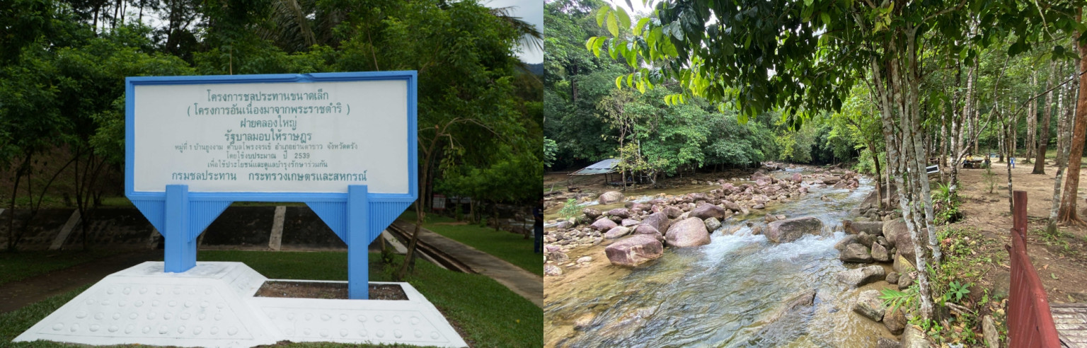 จากนาร้างไร้น้ำ สู่สวนผลไม้เขียวขจีตลอดปี ราษฎรบ้านยูงงาม และบ้านโหล๊ะคล้า ตำบลโพรงจระเข้ อำเภอย่านตาขาว จังหวัดตรัง พลิกฟื้นผืนนาแห้งแล้งกว่า 2,000 ไร่ ให้กลับมาอุดมสมบูรณ์อีกครั้ง หลังได้รับพระราชทานโครงการก่อสร้างฝายคลองใหญ่อันเนื่องมาจากพระราชดำริ เมื่อปี 2538 เกิดเป็นพื้นที่เกษตรผสมผสานรายได้ดี และต่อยอดสู่แหล่งท่องเที่ยวเชิงเกษตร