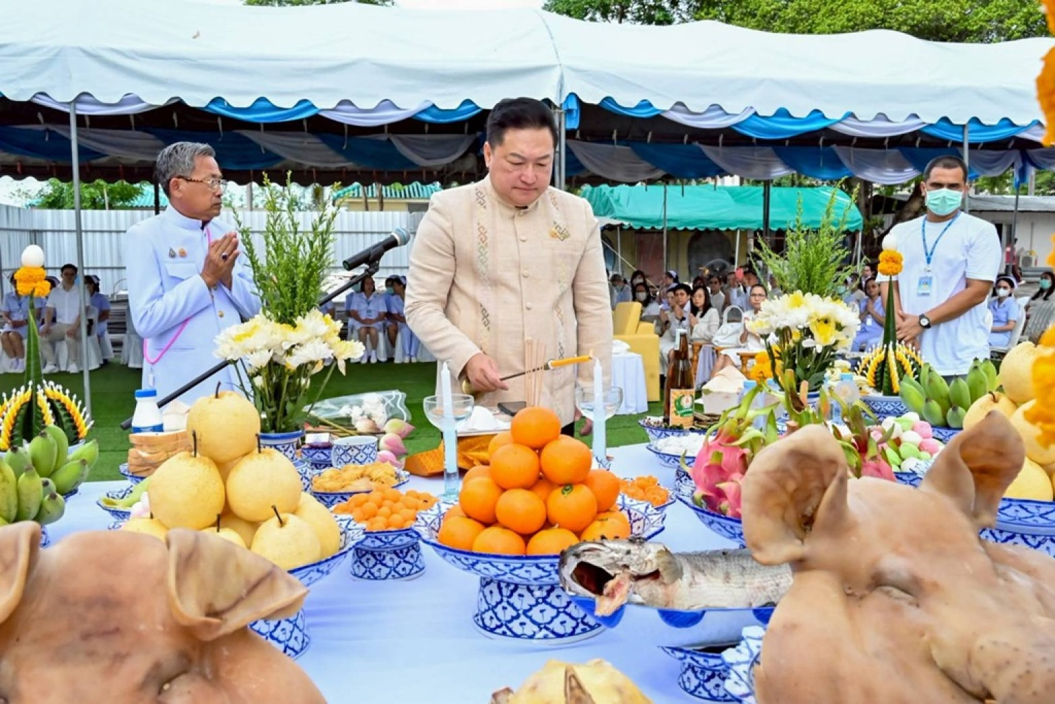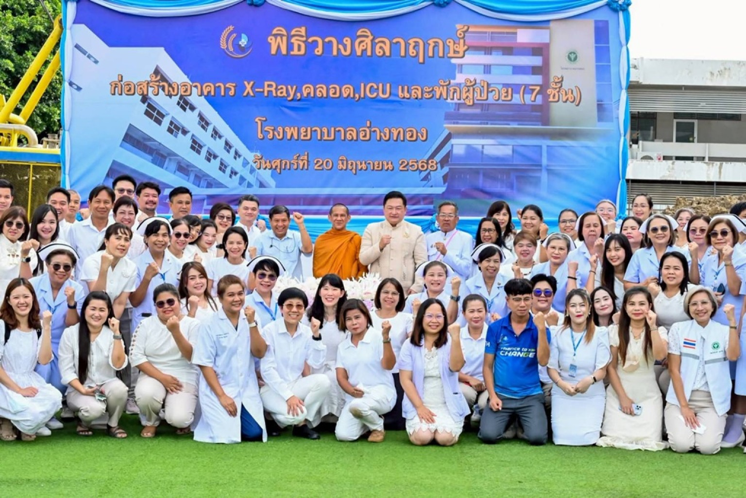โรงพยาบาลอ่างทอง จัดพิธีวางศิลาฤกษ์การก่อสร้างอาคาร I.C.U. และหอพักผู้ป่วย