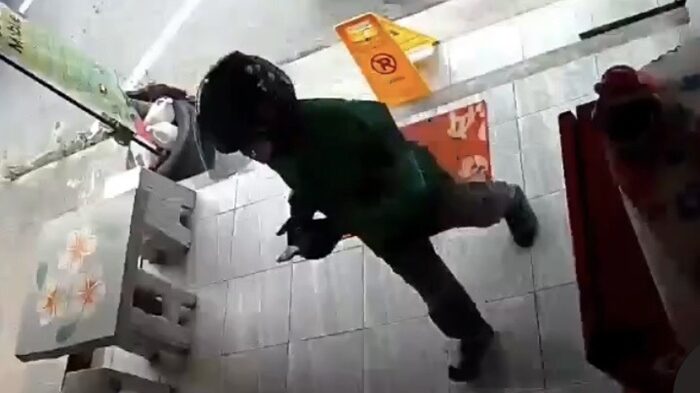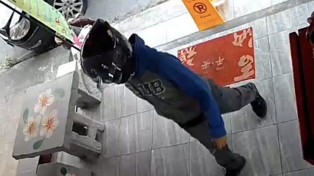 ภาพจากกล้องวงจรปิด แสดงให้เห็นถึงพฤติกรรมของไรเดอร์หัวร้อนที่เข้ามาก่อเหตุในร้านเพื่อรับสินค้า โดยพบว่าเมื่อไรเดอร์รายนี้มาถึงที่หน้าร้านแต่ประตูของร้านถูกล็อกไว้ จึงได้นั่งรอที่รถ จักรยานยนต์สักพัก ก่อนจะขับขี่รถออกไป