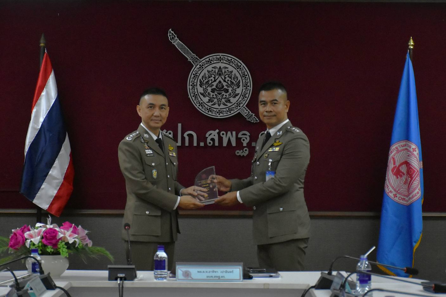ต่อมา พล.ต.ท.อาทิชา ผบช.สพฐ.ตร.อ่านสารส่งความปรารถนาดีถึงข้าราชการตำรวจ สพฐ.ตร. และครอบครัว พร้อมมอบรางวัลเชิดชูเกียรติข้าราชการตำรวจที่ปฏิบัติงานดีเด่น เพื่อสร้างขวัญและกำลังใจแก่ผู้ปฏิบัติงาน ณ ห้องประชุม ศปก.สพฐ.ตร.