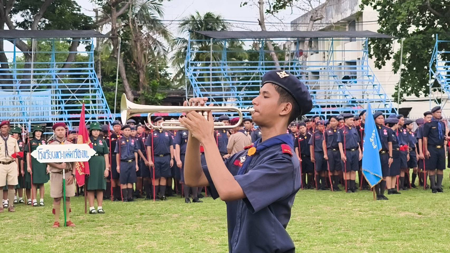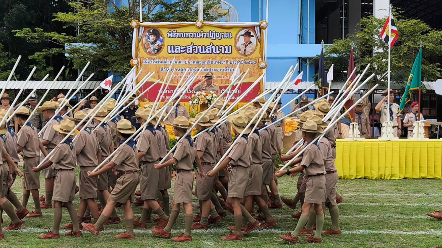 ลูกเสือประจวบทำพิธีสวนสนามและทบทวนคำปฏิญาณ เนื่องในวันคล้ายวันสถาปนาคณะลูกเสือแห่งชาติ ครบ 114 ปี
