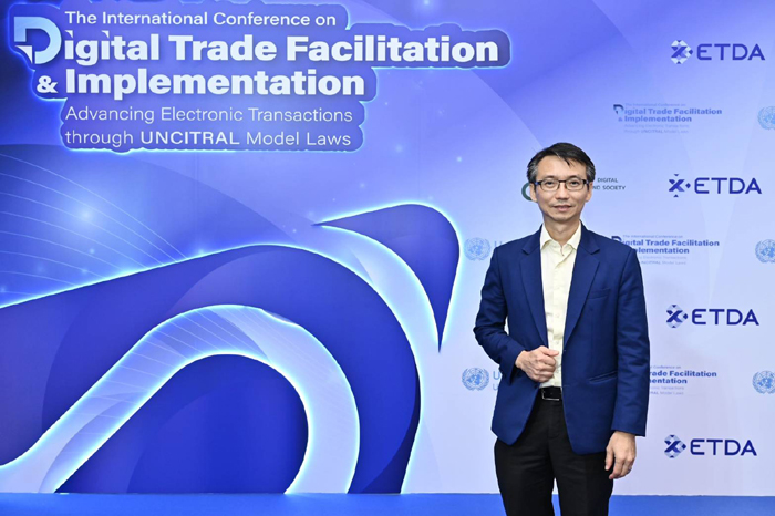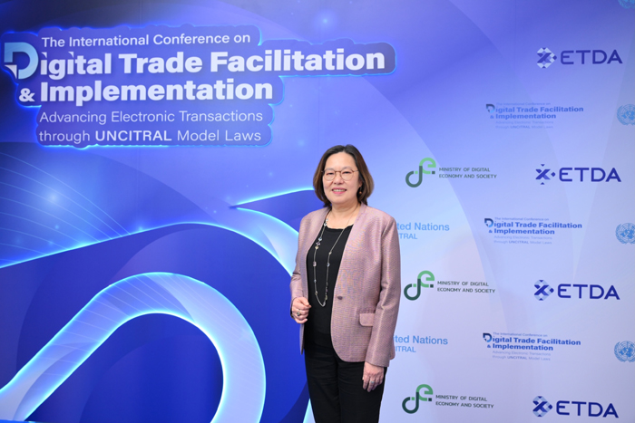 กระทรวงดิจิทัลเพื่อเศรษฐกิจและสังคม โดย สำนักงานพัฒนาธุรกรรมทางอิเล็กทรอนิกส์ (ETDA) จัดการประชุมนานาชาติ The International Conference on Digital Trade Facilitation and Implementation: Advancing Electronic Transactions through UNCITRAL Model Laws เวทีแลกเปลี่ยนแนวคิดเกี่ยวกับการส่งเสริมธุรกรรมอิเล็กทรอนิกส์และการค้าดิจิทัลข้ามพรมแดน ผ่านกรอบกฎหมายและนวัตกรรมดิจิทัล เพื่อส่งเสริมธุรกรรมทางอิเล็กทรอนิกส์ผ่านกฎหมายตัวอย่างของ UNCITRAL เช่น กฎหมายตัวอย่างว่าด้วยเอกสารโอนสิทธิทางอิเล็กทรอนิกส์ (MLETR) เวทีสำคัญที่รวมผู้เชี่ยวชาญระดับโลก ผู้กำหนดนโยบาย นักวิชาการ และผู้ปฏิบัติงานจากหลากหลายภาคส่วน ร่วมแลกเปลี่ยนแนวคิดเกี่ยวกับการส่งเสริมธุรกรรมอิเล็กทรอนิกส์และการค้าดิจิทัลข้ามพรมแดน โดยมีเป้าหมายให้ประเทศไทยสามารถปรับปรุงกฎหมายที่เกี่ยวข้อง และเตรียมพร้อมสำหรับการเข้าร่วมกรอบความร่วมมือทางกฎหมายของ UNCITRAL