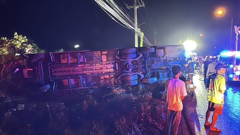 อ่านข่าวต้นฉบับได้ที่ : ระทึกทั้งคัน รถทัวร์ฝ่าฝน ถนนลื่นคว่ำตกถนน 30 ชีวิตสุดช็อก กู้ภัย-พลเมืองดีทุบกระจกช่วยออกมา
