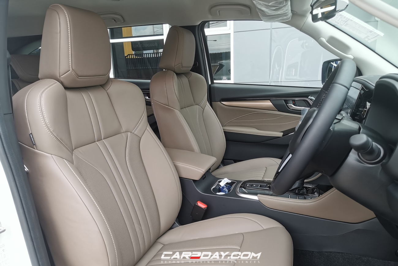 ภายในห้องโดยสาร ด้วยโทนสี Truffle Brown – Black ให้ความรู้สึกอบอุ่น High Class เบาะ 7 ที่นั่ง ดีไซน์ใหม่! สี Truffle Brown ที่นั่งสบายเหนือกว่า โอบรับสรีระ ด้วยวัสดุ Cool Max ช่วยลดการสะสมความร้อน คอนโซลดีไซน์ใหม่! สี Truffle Brown-Black พรีเมี่ยมด้วยวัสดุ Piano Black – Satin Silver บรรยากาศภายในหรูหรา