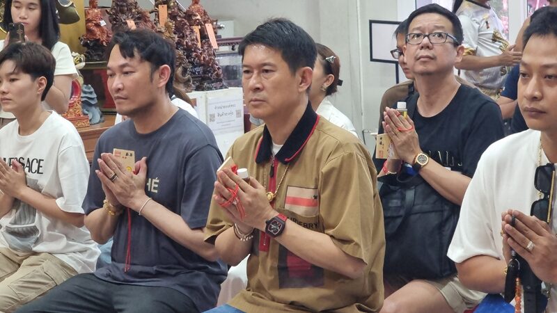 พร้อมกับเหล้าบรั่นดียี่ห้อดัง 90 ลัง หรือ 1,080 ขวด เพื่อแก้บนกับองค์กวนอู หลังประสบความสำเร็จตามที่บนบานขอพรไว้ โดยมีนายปารณวัฐ ลิ่มรัตนอาภรณ์ หรือ ริว จิตสัมผัส เป็นผู้นำสวดบทบูชาเพื่อถวายเหล้าบรั่นดีไทยจำนวนดังกล่าวเพื้อแก้บน