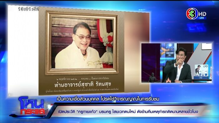 รายการโหนกระแส ออกอากาศวันที่ 10 ส.ค. 66 “หนุ่ม กรรชัย กำเนิดพลอย” ดำเนินรายการ ผลิตในนามบริษัท ดีคืนดีวัน จำกัด ออกอากาศทุกวันจันทร์-ศุกร์ เวลา 12.35 น. ทางช่อง 3 กดเลข 33 สัมภาษณ์ อ.ต้น ทำรูปปั้นครูกายแก้ว , คุณบอย ลูกศิษย์อ.สุชาติ ต้นตำรับครูกายแก้ว , โทน บางแค เซียนพระชื่อดัง และ อ้วน พระราม 5
