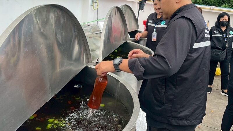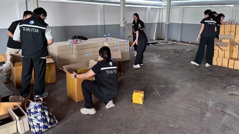 เปิดปฏิบัติการกวาดล้างเครือข่ายลักลอบจำหน่ายยาแก้ไอปลอม และผลิตน้ำกระท่อมผสมน้ำหวานไม่มีเลขสารบบอาหาร (อย.) เข้าตรวจค้น 4 จุด ในพื้นที่ จ.สมุทรปราการ และใกล้เคียง ตรวจยึดยาแก้ไอปลอม น้ำกระท่อมรสผลไม้ เครื่องจักร อุปกรณ์การผลิต และวัตถุดิบ รวมมูลค่ากว่า 2,575,000 บาท