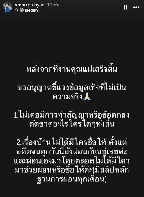 ขออนุญาตชี้แจงข้อมูลเท็จที่ไม่เป็นความจริง(ที่เก็บมาตลอดเกือบ10ปีไม่เคยออกมาพูดอะไร วันนี้ขออนุญาตค่ะ”