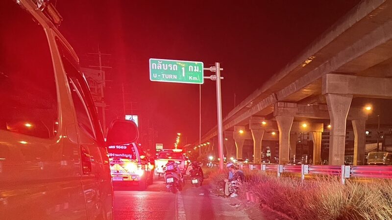 เมื่อเวลา 01.00 น. วันที่ 12 ก.พ.2569 เจ้าหน้าที่ตำรวจ สภ.บางบัวทอง รับแจ้งเหตุรถจักรยานยนต์เสียหลักพลิกคว่ำ บนถนนกาญจนาภิเษกขาออก เชิงสะพานข้ามคลองบางแพรก ต.บางรักพัฒนา อ.บางบัวทอง จ.นนทบุรี จึงรุดไปตรวจสอบพร้อมเจ้าหน้าที่มูลนิธิร่วมกตัญญู และแพทย์เวรจากสถาบันนิติวิทยาศาสตร์
