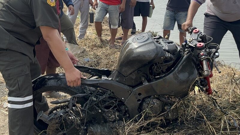 นักศึกษา มหาวิทยาลัยราชภัฏดัง ขับบิ๊กไบก์ พุ่งชนกองขยะลอยเหินตกคลองส่งน้ำ ชิ้นส่วนรถกระจายเกลื่อน เสียชีวิต
