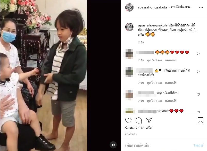 โดยคุณย่าเผยคลิปลงอินสตาแกรม โมเมนต์พี่ชายกับน้องชายเมื่อมาเจอกัน น้องมีก้าอ้อนให้พี่กัสสปอุ้มน่ารักมากๆ พร้อมเผยว่า “น้องมีก้าอยากให้พี่กัสสปอุ้มครับ พี่กัสสปก็อยากอุ้มน้องมีก้าครับ”