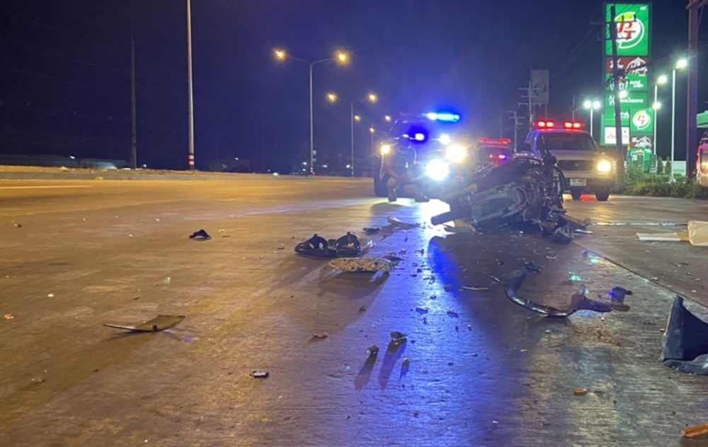 ที่เกิดเหตุพบรถจักรยานยนต์ยี่ห้อฮอนด้า สมายด์ สีดำ ทะเบียน 2 กม9263 ชลบุรี สภาพรถด้านหน้าพังเสียหายยับเยิน ล้มตะแคงทับร่างผู้เสียชีวิต สภาพกะโหลกศีรษะด้านซ้ายแตก เลือดออกจำนวนมาก ทราบชื่อคือ นายภานุวัฒน์ สมนึก อายุ 22 ปี ชาวอ.บ้านบึง จ.ชลบุรี ซึ่งจากการตรวจสอบไม่พบรถคู่กรณี