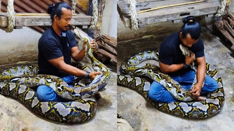 ชายมาเลย์สุดเศร้า กอดงูเหลือมครั้งสุดท้าย เลี้ยงมา 20 ปี หนัก 240 กิโลกรัม แต่น้องกลับดาวงูแล้ว ชาวเน็ตแห่ให้กำลังใจเพียบ