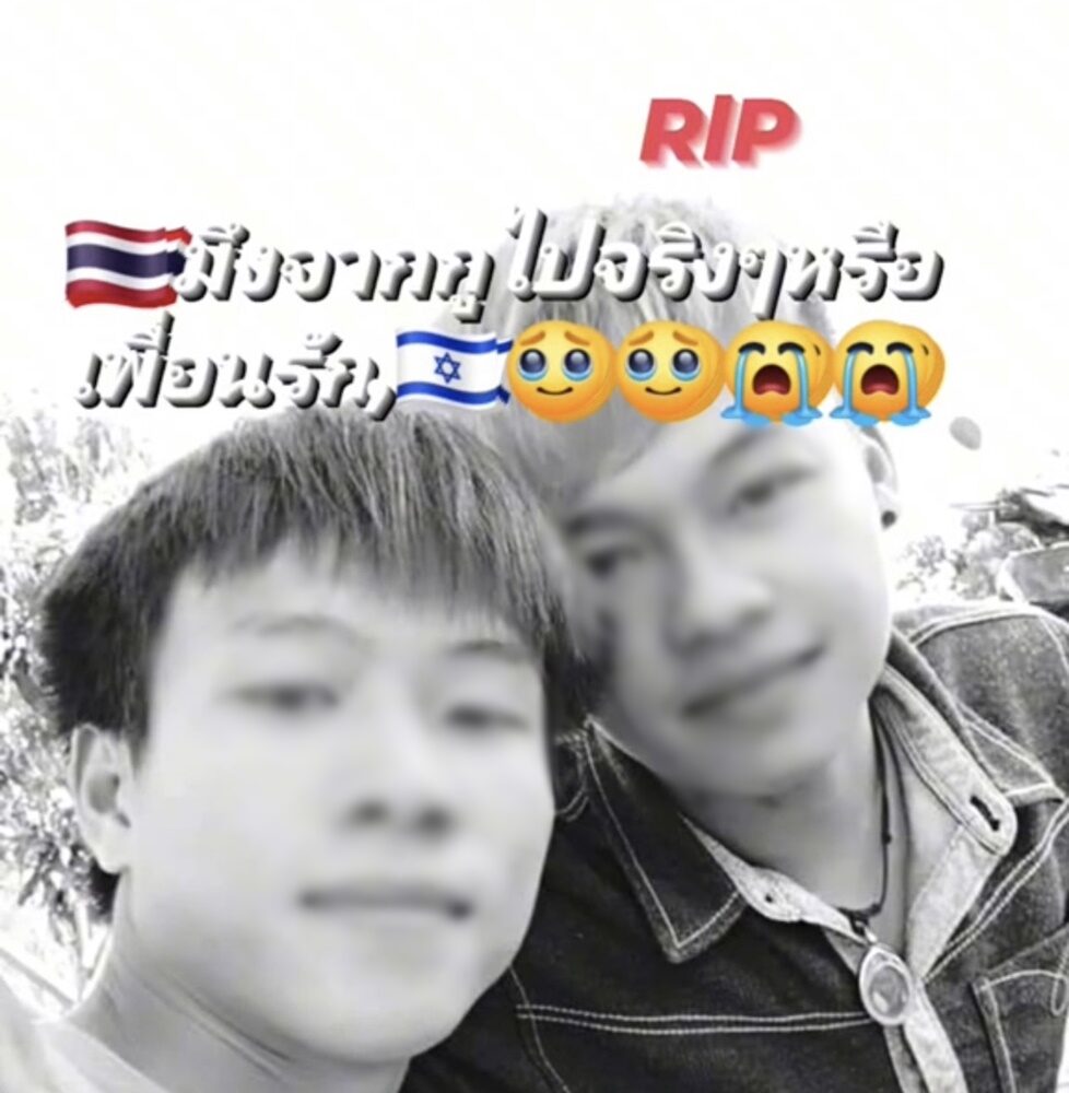 จนถึงวันที่ 9 ต.ค.ติดต่อผ่านเพื่อนสามีที่ทำงานอยู่แคมป์เดียวกัน ได้รับแจ้งว่าสามีตายแล้ว ตั้งแต่วันที่ 7 ต.ค.ที่ผ่านมา โดยเพื่อนที่เห็นเหตุการณ์เล่าว่า หลังจากคุยโทรศัพท์เสร็จ สามีก็มานั่งทานข้าวกับเพื่อนคนงาน ระหว่างทานข้าวกลุ่มติดอาวุธฮามาสบุกเข้ามาแล้วขว้างระเบิดใส่ จากนั้นกราดยิงคนงานที่กำลังนั่งทานข้าวอยู่ แต่สามีโดนยิงที่ขาและเอวยังไม่ตาย กลุ่มติดอาวุธจึงลากออกมาแล้วยิงเข้าที่หัว
