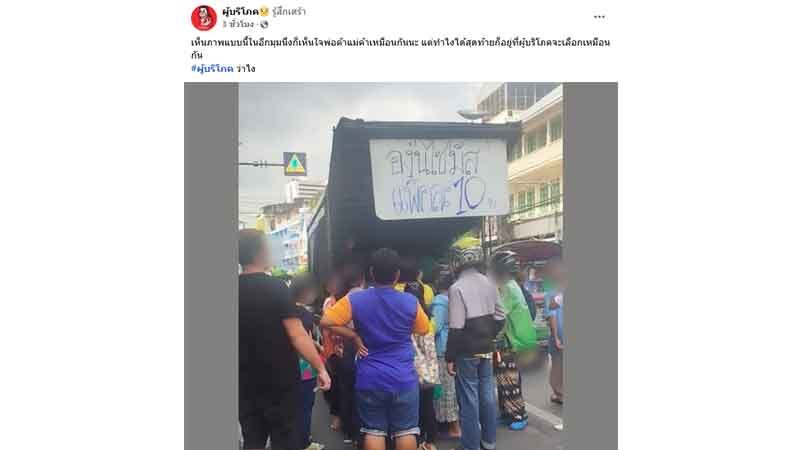 ล่าสุดพบว่าเพจเฟซบุ๊กของ ผู้บริโภค โพสต์ภาพรถขาย องุ่นไชน์มัสแคท ที่ลดราคาเหลือเพียง แพ็กละ 10 บาทเท่านั้น โดยมีประชาชนเข้าไปมุงท้ายรถจำนวนนึง ทางเพจระบุข้อความว่า เห็นภาพแบบนี้ในอีกมุมนึงก็เห็นใจพ่อค้าแม่ค้าเหมือนกันนะ แต่ทำไงได้สุดท้ายก็อยู่ที่ผู้บริโภคจะเลือกเหมือนกัน