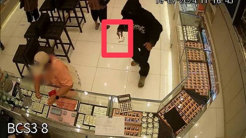 ก่อนปีนขึ้นไปเหยียบบนตู้โชว์ทองคำ เข้าไปกวาดสร้อยทองรูปพรรณ จากถาดภายในตู้โชว์ด้านหลังออกไป น้ำหนักประมาณ 40 บาท ก่อนวิ่งออกจากร้านไปอย่างรวดเร็ว โดยใช้เวลาก่อเหตุไม่ถึง 1 นาที