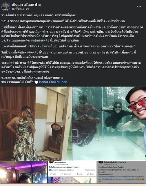 ล่าสุดมีผู้ใช้เฟซบุ๊กชื่อ เป็นเอก อรัณยะปาล เพื่อนสนิทรุ่นพี่และผู้จัดการส่วนตัว โพสต์แสดงความอาลัยว่า "ว่าเตรียมใจ ทำใจมาพักใหญ่แล้ว แต่เอาเข้าจริงมันก็จุกนะ ขอบคุณมาก ๆ และพูดบอกขอบคุณบิวมาตลอดที่ให้ได้เข้ามาเป็นส่วนหนึ่งในชีวิตแม่บ้านมีหนวด