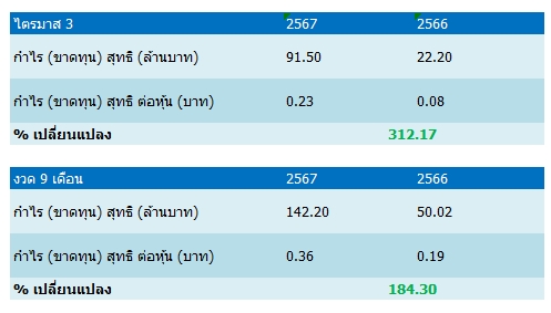 บริษัท เจนก้องไกล จำกัด (มหาชน) หรือ JPARK รายงานผลการดำเนินงานงวดไตรมาส 3 และงวด 9 เดือนแรกของปี 67 สิ้นสุด 30 ก.ย.67 มีกำไรสุทธิ ดังนี้