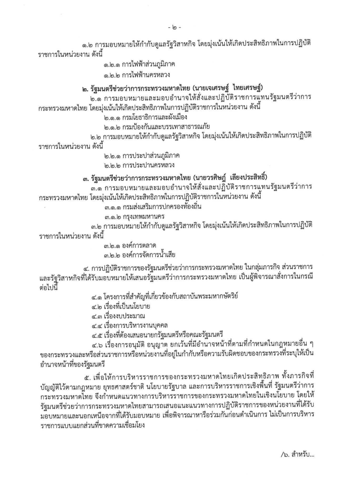 'อนุทิน' เซ็นคำสั่งมอบอำนาจหน้าที่ รมช.มหาดไทย เจ้าตัวคุมปกครอง 'พลพีร์' ดูที่ดิน-พช.-กฟภ.-กฟน. 'เจเศรษฐ์' โยธาฯ-ปภ.-กปภ.-กปน. 'วรศิษฎ์' สถ.- กทม. - อจน. - อต.