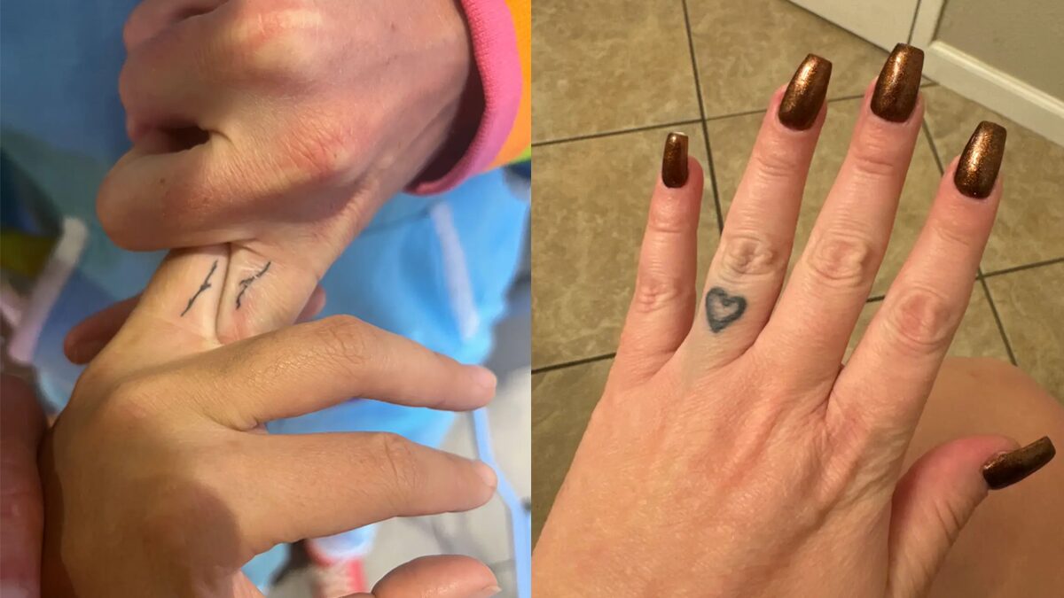 ด้านลินด์เซย์ เบ็ค วัย 42 ปี จากแคลิฟอร์เนีย ก็เลือกสักรูปหัวใจแทนแหวน โดยสามีเป็นคนสักให้เอง