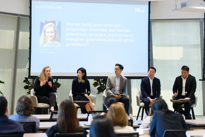 ประเด็นด้านกฎหมายและภาษีเป็นอีกหนึ่งเสาหลักสำคัญในการปกป้องความมั่งคั่ง โดย นายปัญญา สิทธิสาครศิลป์ Partner (Tax and Wealth Management) บริษัท Baker McKenzie (ประเทศไทย) เน้นย้ำถึงความสำคัญของการเตรียมความพร้อมด้านกฎหมายและภาษีตั้งแต่แรกเริ่ม โดยเฉพาะเรื่องโครงสร้างการถือครองสินทรัพย์ ความเสี่ยงด้านภาษี และมาตรการกำกับดูแลที่เกี่ยวข้อง จะมีบทบาทสำคัญต่อการลดความเสี่ยงให้แก่ครอบครัวผู้มั่งคั่งระดับสูง นอกจากนี้อีกหนึ่งประเด็นที่ได้รับความสนใจ คือ การทำกิจกรรมเพื่อสังคม (Philanthropy) ซึ่งถูกมองว่าเป็นเครื่องมือด้านธรรมาภิบาลที่ช่วยเชื่อมโยงสมาชิกในครอบครัวต่างรุ่นเข้าด้วยกัน โดย นางลอร่า เฮมริก้า (Laura Hemrika) ประธานเจ้าหน้าที่บริหารของ Julius Baer Foundation อธิบายว่า การให้ที่มีโครงสร้างชัดเจนสามารถสร้าง ‘พื้นที่การเรียนรู้ที่เป็นกลาง’ ซึ่งช่วยเชื่อมโยงคนต่างรุ่นในครอบครัว สร้างเป้าหมายร่วมกัน และเสริมสร้างอัตลักษณ์ของครอบครัวให้แข็งแกร่งยิ่งขึ้น โดยเฉพาะในช่วงเวลาที่คนรุ่นใหม่ต้องการมีส่วนร่วมกับกิจกรรมที่สร้างผลกระทบเชิงบวกต่อสังคม