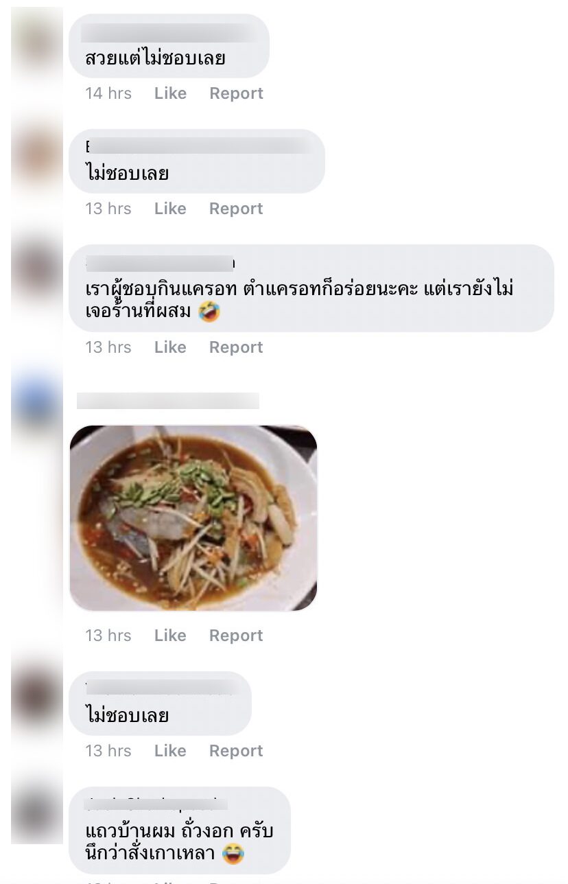 อีกส่วนบอกเฉยๆ จะใส่หรือไม่ใส่ก็ได้ ไม่มีผล ถ้าไม่ชอบก็แค่บอกแม่ค้าว่าไม่ใส่ แม่ค้าก็ทำให้ได้ ซึ่งหลายคอมเมนต์บอกว่า สาเหตุที่แม่ค้าใส่แครอทนั้น อาจเป็นการพยายามลดต้นทุน เนื่องจากมะละกอมีราคาแพง