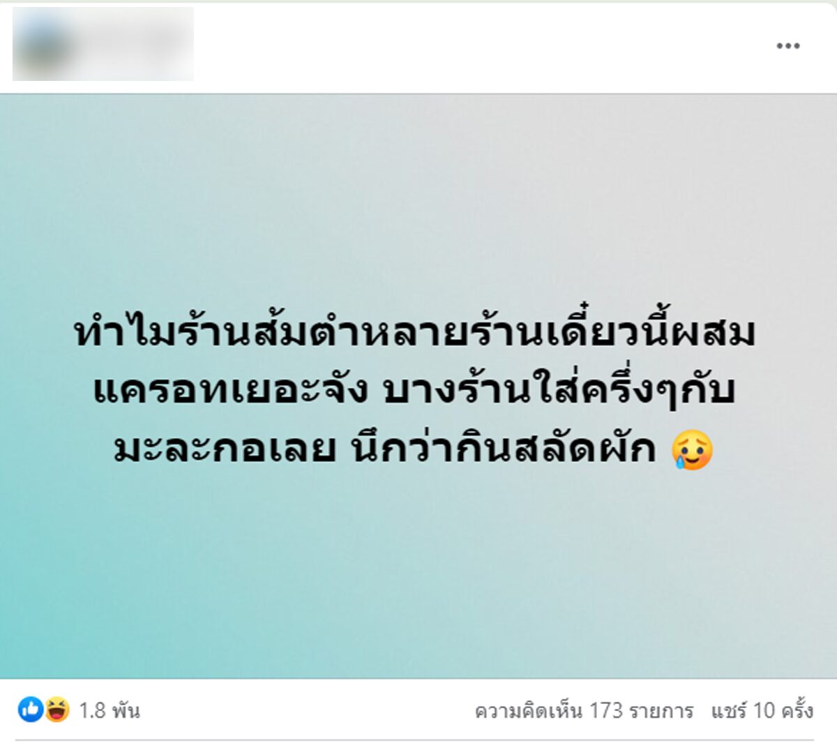 สรุปส้มตำใส่แครอทไหม!? ชาวเน็ตทนไม่ไหว ตัดพ้อ #ทวงคืนส้มตำออริจินอล