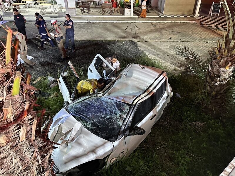 เมื่อเวลา 03.00 น. วันที่ 15 มิ.ย.68 ร.ต.ท.กฤษดาธรณ์ พาลีบัตร รองสารวัตร(สอบสวน) สน.ประเวศ รับแจ้งมีอุบัติเหตุรถยนต์พุ่งชนตกข้างทางมีผู้เสียชีวิต ริมถนนศรีนครินทร์-ร่มเกล้า แขวงทับช้าง เขตสะพานสูง กทม. จึงรุดไปตรวจสอบพร้อมอาสาสมัครมูลนิธิป่อเต็กตึ๊ง