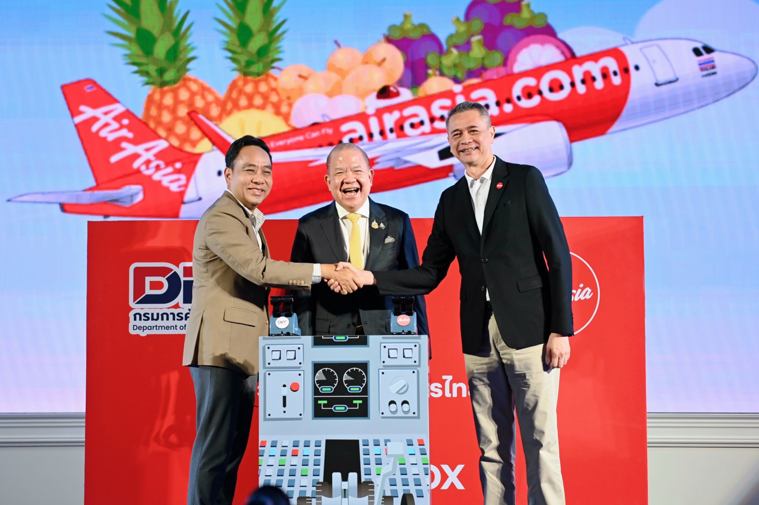 นายวิทยากร มณีเนตร อธิบดีกรมการค้าภายใน กล่าวว่า กรมได้รับมอบหมายจากนายพิชัยให้ลงนาม MOU ร่วมกับบริษัท ไทยแอร์เอเชีย จำกัด ในการช่วยดูดซับผลผลิตผลไม้ตามมาตรการบริหารจัดการผลไม้ปี 2568 เป้าหมาย 1,000 ตัน โดยต้องขอขอบคุณไทยแอร์เอเชียในความร่วมมือในครั้งนี้ ซึ่งจะช่วยรับซื้อผลไม้หลัก 3 ชนิด ได้แก่ ลำไย มังคุด และสับปะรดภูแล ผลิตเป็นเมนูจำหน่ายบนสายการบินไทยแอร์เอเชียตลอดทั้งปี และยังช่วยสนับสนุนนำไปผลิตเป็นสินค้าผลไม้แปรรูป ในรูปแบบการเข็นขายบนเครื่อง และมีแผนที่จะช่วยเกษตรกรผู้เลี้ยงกุ้งขาวแวนนาไมกับปลากะพงด้วยการทำเมนูอุ่นร้อนพร้อมทานจำหน่ายบนสายการบินทั้งในประเทศและต่างประเทศด้วย ซึ่งที่ทราบมา คือเมนูน่าทานมาก ๆ ไม่ว่าจะเป็นเอบิซารุโซบะ แกงเหลืองทะเลไข่เจียวโหระพา