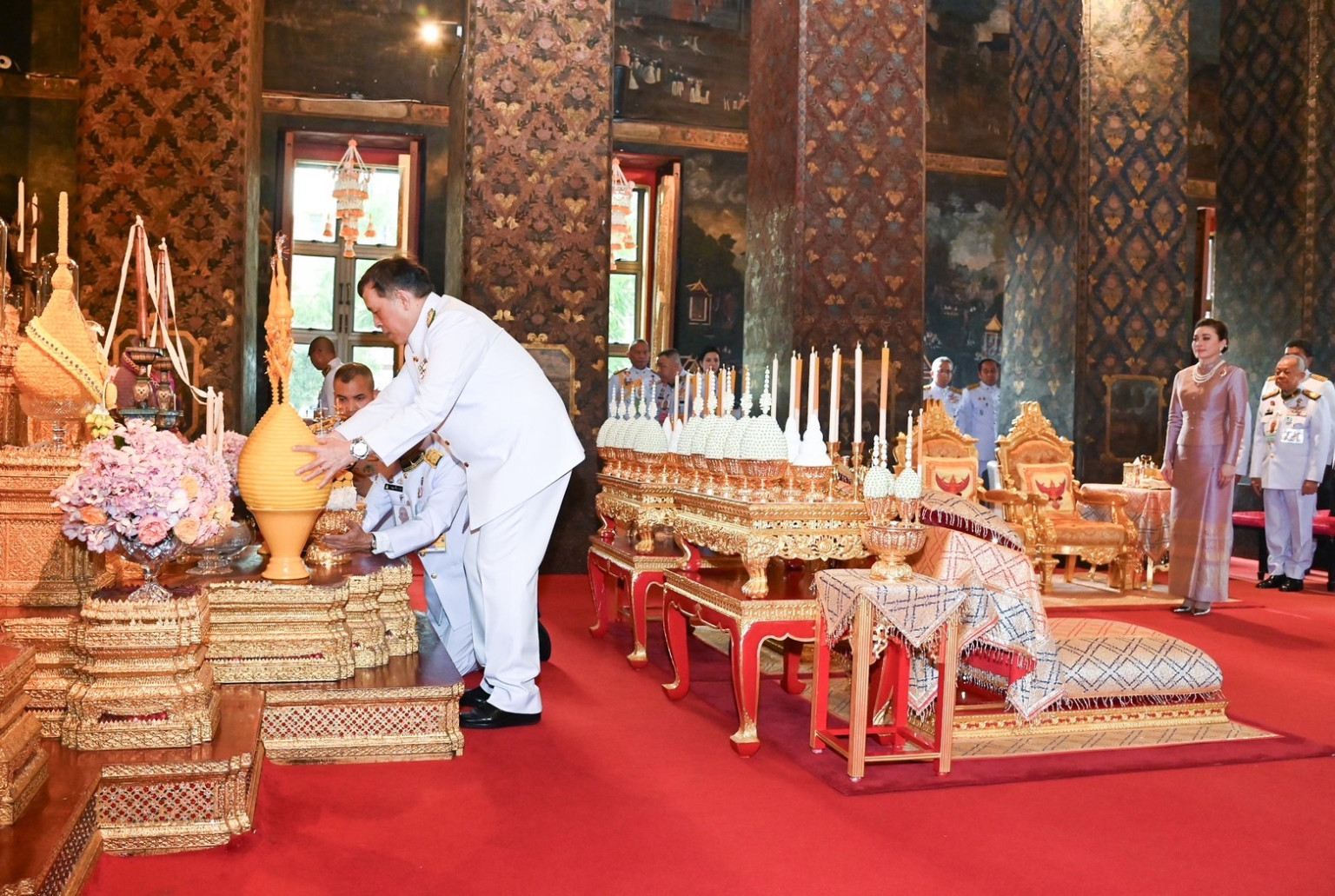 "ในหลวง-พระราชินี"เสด็จพระราชดำเนินไปในการพระราชพิธีทรงบำเพ็ญพระราชกุศล เนื่องในเทศกาลเข้าพรรษา
