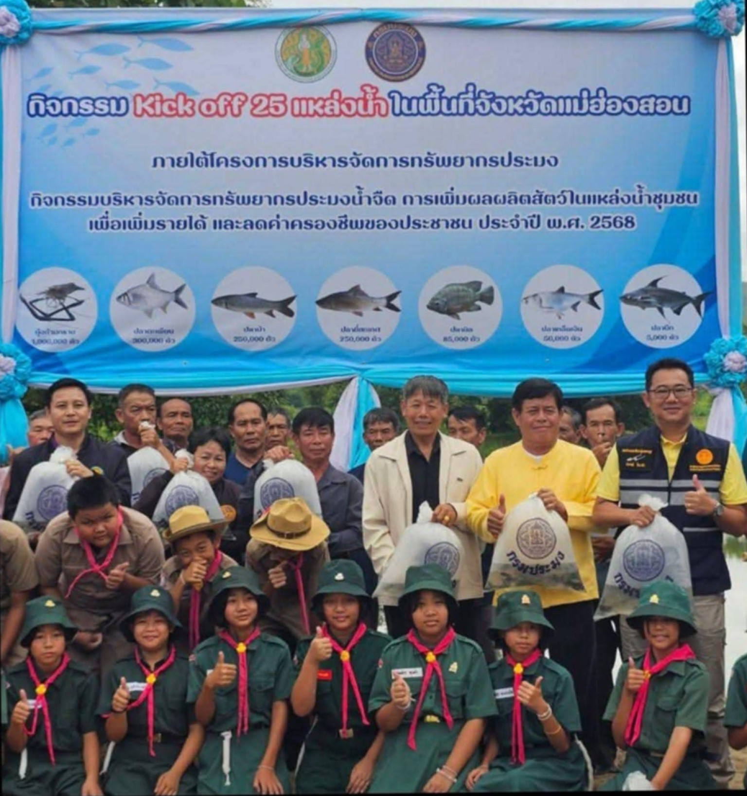 นายปกรณ์ จีนาคำ สมาชิกสภาผู้แทนราษฎร พรรคกล้าธรรม เขต 1 จังหวัดแม่ฮ่องสอน เดินทางร่วมพิธีเปิดกิจกรรม และร่วมปล่อยพันธุ์กุ้งก้ามกราม ขนาด 5 - 7 เซนติเมตร ลงในแหล่งน้ำชุมชน ซึ่งมี นางสมพร กันธิยะวงค์ ผู้อำนวยการศูนย์วิจัยและพัฒนาการเพาะเลี้ยงสัตว์น้ำจืดแม่ฮ่องสอน ร่วมกับสำนักงานประมงจังหวัดแม่ฮ่องสอน สำนักงานประมงอำเภอ ผู้นำท้องถิ่นและประชาชนในพื้นที่ ร่วมปล่อยพันธุ์กุ้งก้ามกราม ขนาด 5 - 7 เซนติเมตร ลงในแหล่งน้ำชุมชน ภายใต้โครงการบริหารจัดการทรัพยากรประมง กิจกรรมบริหารจัดการทรัพยากรประมงน้ำจืด การเพิ่มผลผลิตสัตว์น้ำในแหล่งน้ำชุมชน เพื่อเพิ่มรายได้และลดค่าครองชีพของประชาชน ประจำปีงบประมาณ พ.ศ.2568 ซึ่งได้จัดซื้อพันธุ์สัตว์น้ำ ลูกกุ้ง ปล่อยลงสู่แหล่งน้ำ จำนวน 4 แหล่งน้ำ ดังนี้
