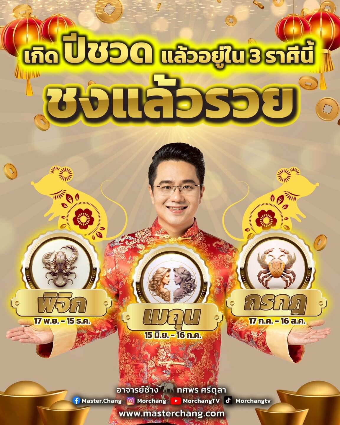หมอช้าง เปิดดวง 3 ราศี ใครอยู่ในราศีนี้ ชงแล้วรวย เปลี่ยนแปลงใหญ่ของชีวิต