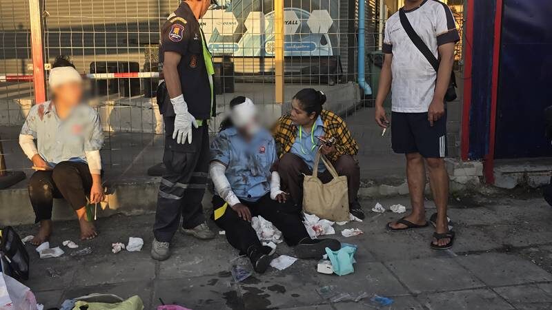 เจ้าหน้าที่กู้ภัยถึงรีบทำการปฐมพยาบาลเบื้องต้น ก่อนลำเลียงนำส่งโรงพยาบาลสมเด็จพระบรมราชเทวี ณ ศรีราชาและโรงพยาบาลแหลมฉบัง