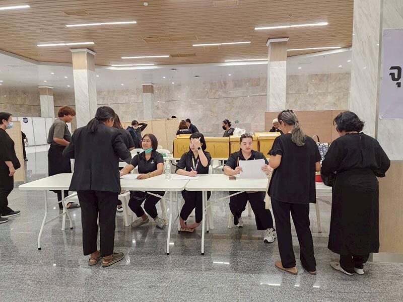 กทม. เปิดให้บริการยืมฟรี กระโปรง-ผ้าถุง เข้าถวายสักการะพระบรมศพ เบื้องหน้าพระฉายาลักษณ์ พระพันปีหลวง ในพระบรมมหาราชวัง