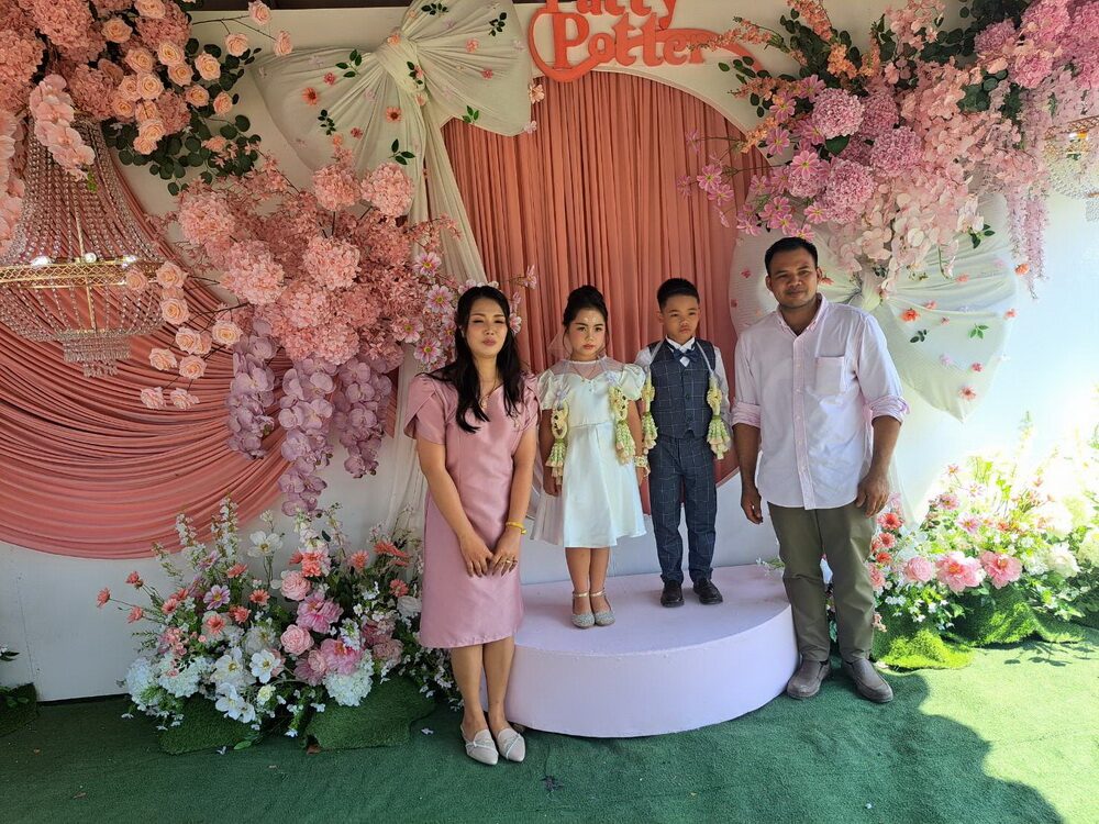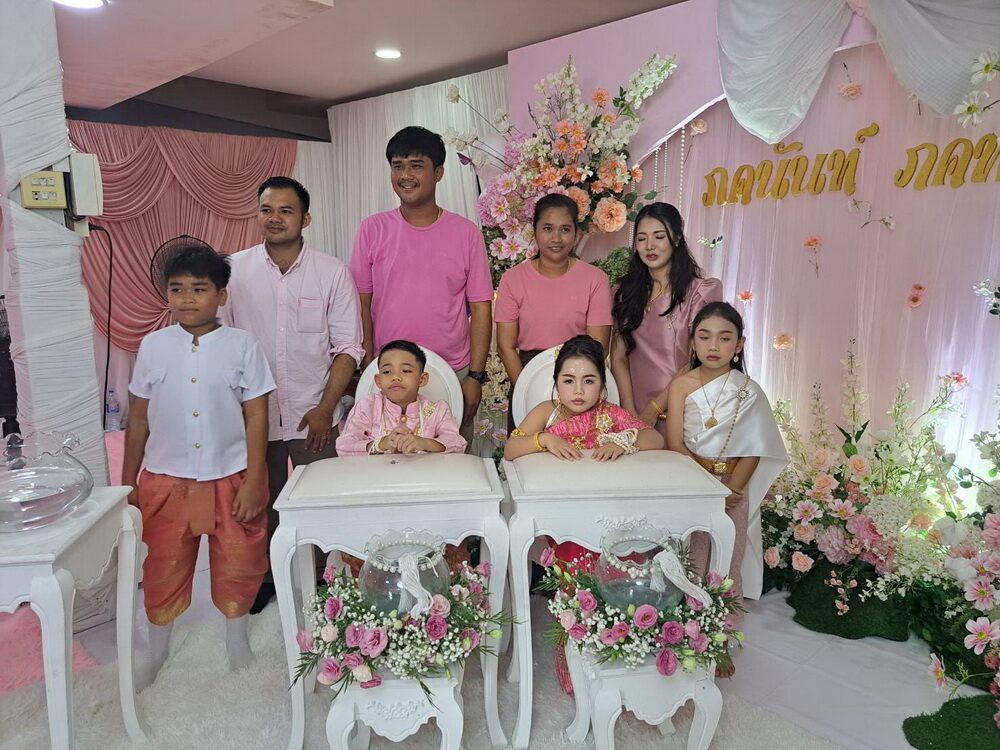 วิวาห์เด็กแฝดชายหญิง วัย 7 ขวบ พ่อเผยแก้เคล็ดตามความเชื่อโบราณ เพื่อได้ไม่เจ็บป่วย จัดขบวนขันหมากสินสอด ผูกข้อมือเลี้ยงโต๊ะจีนแขกที่มาร่วมงาน