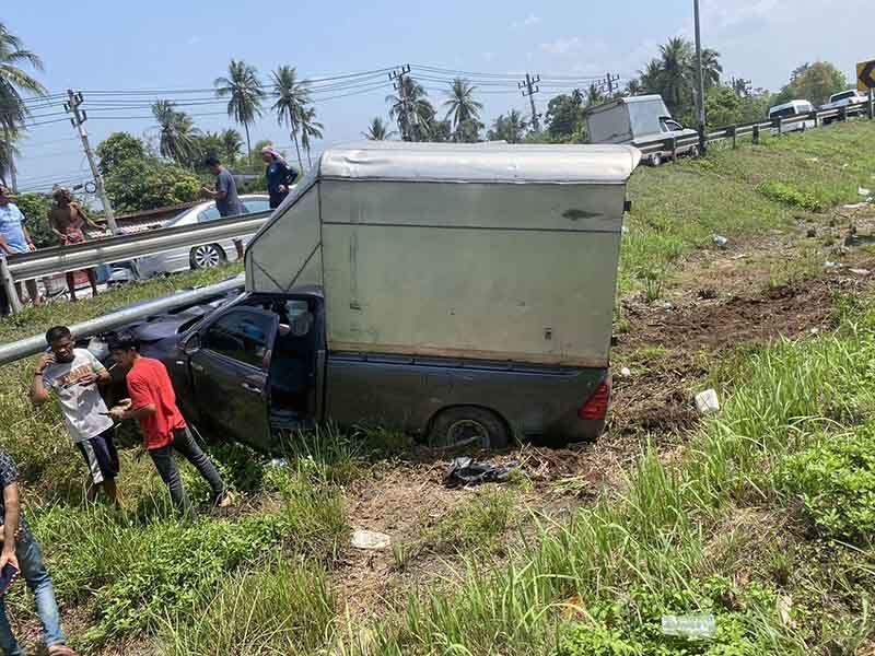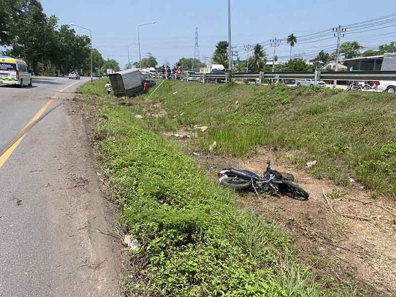 กระบะตู้ทึบ ขนน้ำมัน 6,000 ลิตร ชนจยย.ลุง 63 โคม่า คนขับหนี มีรถหรูมาขอเคลียร์ตร.