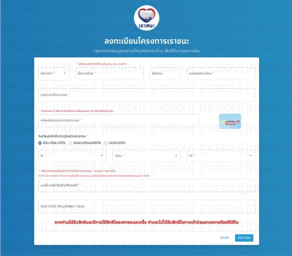 - 1.เปิดลงทะเบียนเข้าไปที่ www.เราชนะ.com ตั้งแต่ 6 โมงเช้า