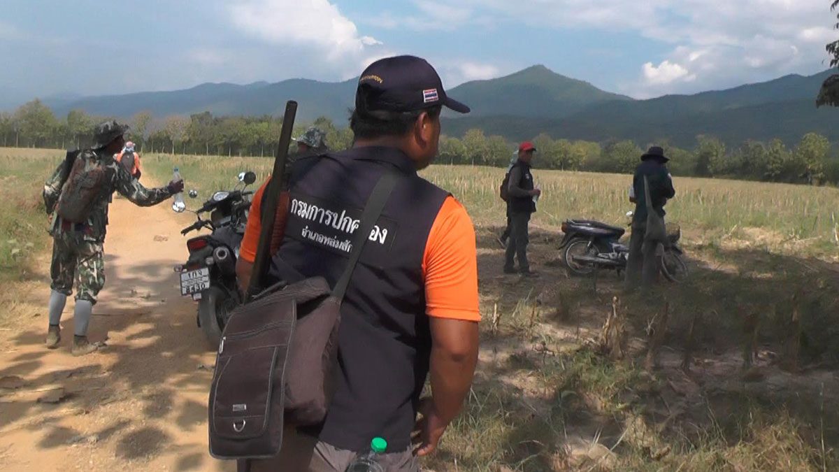 จากนั้นสัตว์ตัวดังกล่าวได้ร้องเสียงดังขึ้นคล้ายๆ กับเสียงช้าง ด้วยความกลัวตนจึงรีบขับรถจยย.ไปตามชาวบ้านให้มาช่วยกันดู ก่อนพบว่ามีร่องรอยขี้และขนที่ติดอยู่กับลวดนามซึ่งเป็นของหมีควาย เจ้าหน้าที่จึงได้ระดมกำลังออกไล่โดยใช้ประทัดจุดไล่ กดดันให้ขึ้นไปบนภูเขา