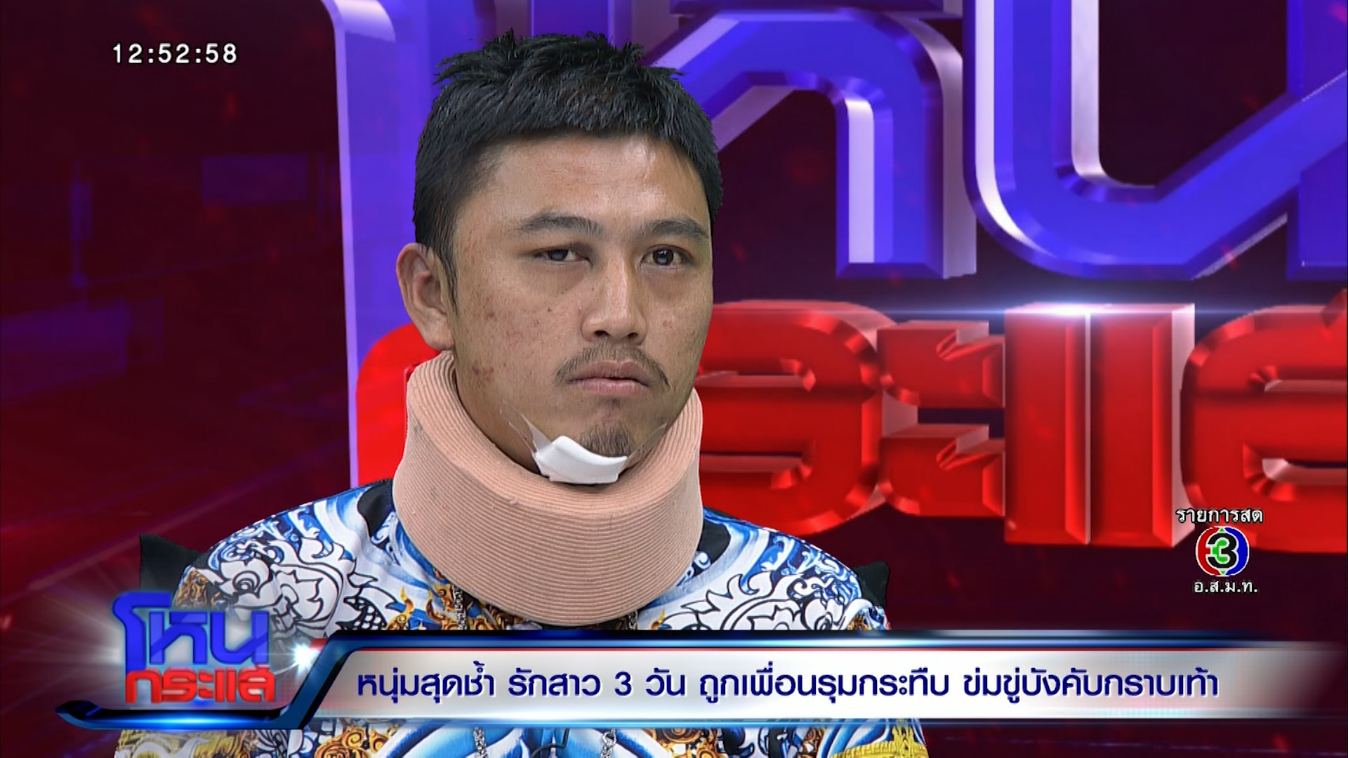 หนุ่มเปิดใจสุดช้ำ / จากกรณีชายคนหนึ่งคบหาดูใจกับสาวที่รู้จักได้แค่ 3 วันในเฟซบุ๊ก ก่อนนัดแนะไปมีเพศสัมพันธ์กัน ต่อมาหญิงสาวคนดังกล่าวโทรศัพท์ตามพรรคพวกให้มารุมกระทืบ สภาพสะบักสะบอม มีการโพสต์คลิปทำร้ายร่ายกายลงในเฟซบุ๊ก โดยในคลิปจังหวะหนึ่ง ชายหนุ่มถูกบังคับให้ก้มกราบเท้าหญิงคนดังกล่าว ขณะที่ครอบครัวฝ่ายชายต้องการเรียกร้องขอความเป็นธรรม เพราะถูกใส่ร้ายว่าไปยุ่งวุ่นวาย และล่วงละเมิดทางเพศ