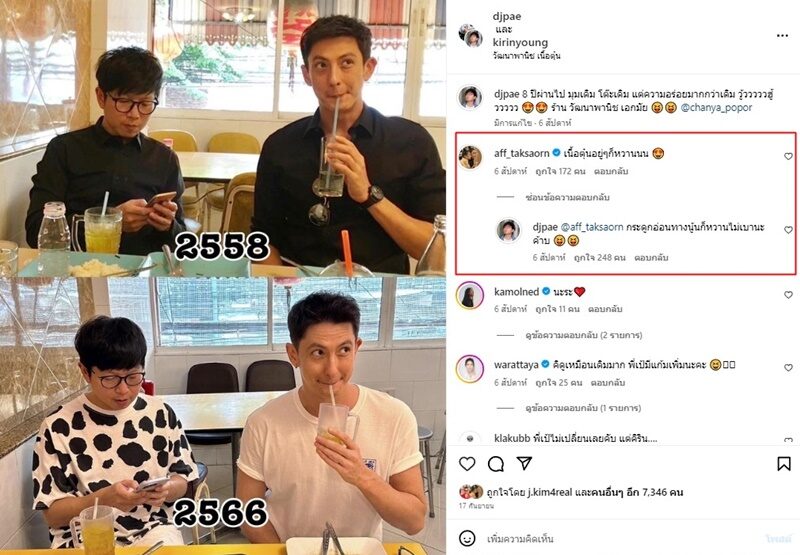 ขณะที่ย้อนคอมเมนต์เมื่อไม่กี่สัปดาห์ที่ผ่านมาดีเจเป้ วิศวะ โพสต์กับ คิริน ยัง ขณะไปกินเนื้อตุ๋นร้านดัง พร้อมเทียบภาพ 8 ปี แคปชั่นว่า“8 ปีผ่านไป มุมเดิม โต๊ะเดิม แต่ความอร่อยมากกว่าเดิม วู้วววววฮู้ววววว ร้าน วัฒนาพานิช เอกมัย”