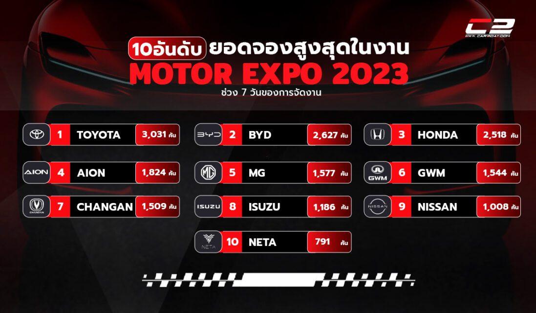 ยอดจอง Motor Expo 7 วัน Toyota สวนหมัดกลับ BYD ปาดแซงขึ้นที่ 1
